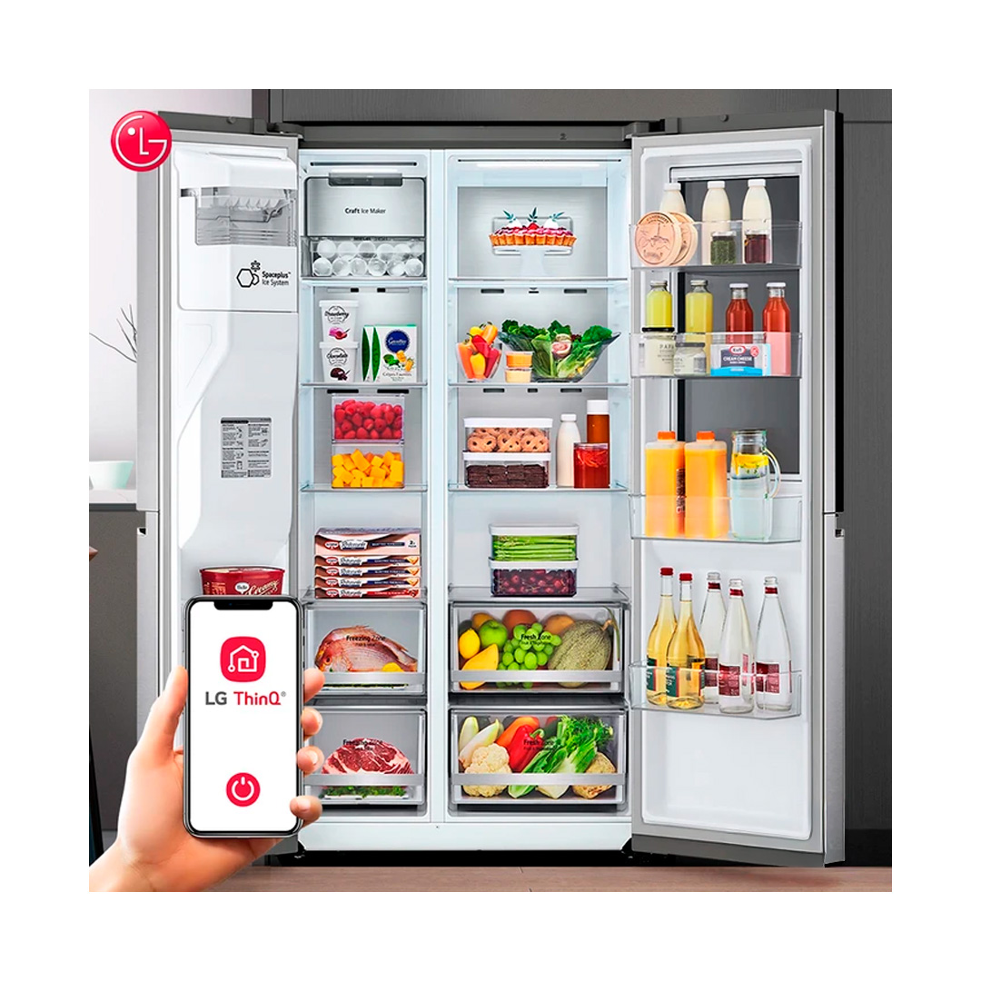 Esta refrigeradora side-by-side de gran capacidad (637 litros brutos) de LG, modelo LS66SXSC, combina diseño moderno, tecnología avanzada y espacio generoso, ideal para hogares que desean funcionalidad premium en la cocina.